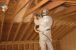 Легкий в установке плитный утеплитель, нередко снабженный фольгированным покрытием для лучшего теплосбережения. - Эковата, пеноизол. Напыляемый теплоизолятор бюджетной стоимости и повышенной пожаростойкости, позволяющий создать бесшовный утепляющий слой.