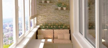 - внутреннюю отделку: утепление различными материалами, изоляцию, отделку ПВХ-панелями, выполнение пола любой сложности (ламинат, плитка, линолеум, «теплый пол»), выведение точечных светильников, балконную мебель.