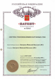 Технология утепления, описанная в данной статье, является запатентованной и находится под защитой Патентов Российской Федерации («Система теплоизоляции наружных стен» (Патент № 72242 и Патент № 96585)).