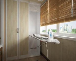 Вы не знаете, где Вам расположить гладильную доску? В идеале поставить ее так, чтобы не собирать-разбирать каждый день, и чтобы она не бросалась в глаза. Такое функциональное место есть у Вас на балконе. Установите специальный шкаф с отсеком, в который будет убираться гладильная доска. В шкафу будут дополнительные полки, которые Вы можете использовать под постельное белье и банные полотенца, тем самым освободиться гардеробная с Вашей одеждой.