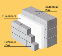 При наружном креплении плит ПСБС их поверхность оштукатуривается цементным раствором, нанесенным на прочную основу (н-р сетку). Снаружи пенопластовые плиты закрывают различными материалами - кирпичом, штукатуркой, плиткой и т.п.