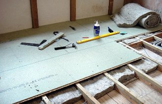 - Стекловата и базальтовая вата. Универсальный теплоизоляционный материал с высокими показателями теплосбережения, но достаточно гигроскопичный, требующий устройства усиленной гидроизоляции и паробарьера для отвода конденсата. При намокании минеральная вата существенно теряет свои теплосберегающие свойства, поэтому для банных полов предпочитают использовать пенополистирол.