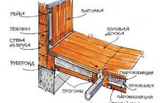 - Вспененные полимеры (пеноизол, эковата). Вспененный теплоизолятор, полностью заполняющий все щели и стыки конструктивных элементов основания, широко применяется для утепления банных полов на деревянных лагах. Этот утеплитель не оказывает большой нагрузки на конструкцию перекрытия и обладает высокими теплотехническими параметрами.