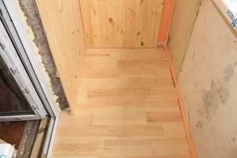 | Настил ламината. Ламинат подойдет людям, что заботятся о долговечности напольного покрытия любимой лоджии. Плюс превосходное утепление пола благодаря свойствам материала. |