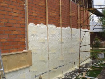 Прежде чем начать утепление кирпичных стен, подготавливают основу под теплоизоляцию: стесывают и заделывают раствором выступы, углубления, перепады высоты. Как только основа высохнет, ее очищают от грязи, пыли и наносят грунтовку глубокого проникновения.